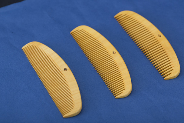 Yutaka Saito, le propriétaire actuel de la boutique. Le buis classiquement utilisé pour ces peignes, issu du sud-ouest du Japon, possède une solidité et une souplesse idéales. La maison Yonoya recourt plus précisément au buis de Satsuma, qui provient de la région de Kagoshima et est réputé pour sa qualité optimale. Les peignes sont découpés sommairement dans le bois, préalablement séché en étuves afin de réduire son taux d’humidité. M. Saitō procède ensuite, au sein de l’atelier, à la taille des dents et au polissage. Le peigne est enfin plongé pendant une semaine dans un bain d’huile de camélia, qui va imbiber le bois. Ces minutieuses finitions permettront ainsi une glisse tout en douceur dans les cheveux et sur la peau. Les peignes ainsi obtenus génèrent très peu d’électricité statique, massent agréablement le cuir chevelu, tandis que l’huile de camélia nourrit efficacement le cheveu. Les personnes utilisant régulièrement ces peignes vantent d’ailleurs souvent leurs mérites dans l’obtention d’une coiffure à la brillance naturelle.