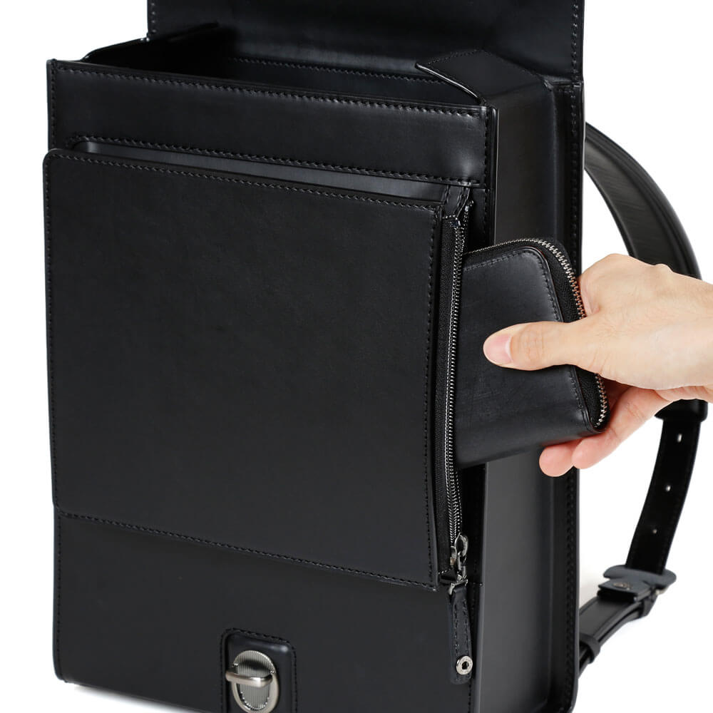 - Le revers rembourré est fait du même cuir de vache souple que les Randsels de Tsuchiya Kaban, pour une meilleure respirabilité.