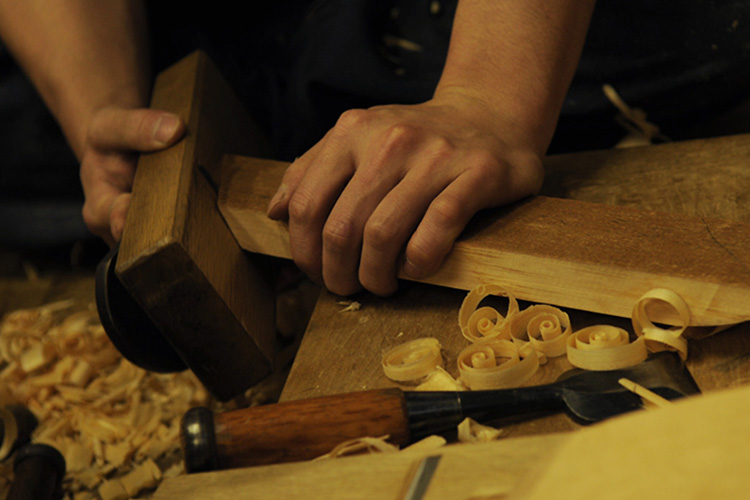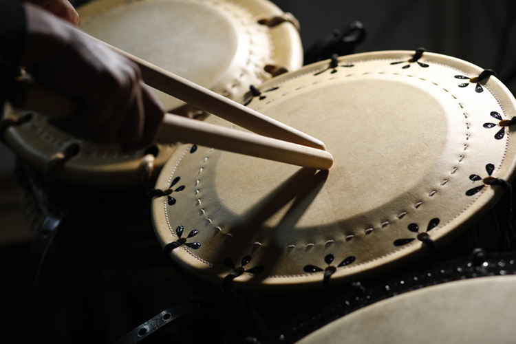 Chez Miyamoto Unosuke Shoten, c’est une équipe d’artisans qui ont hérité des compétences et de l’esprit des maîtres artisans qui est chargée de fabriquer les produits sous la devise « non pas une poignée de maîtres artisans, mais un groupe de techniciens au service de la plus haute qualité ». Par exemple, pour les taiko, tout commence par la recherche des meilleurs matériaux. Le bois coupé dans les montagnes du Japon est façonné en une forme connue sous le nom d’« arado » (forme ébauchée du corps de taiko) et séché naturellement sur une période de 3 à 5 ans. Le bois est ensuite raboté par des artisans avertis qui repèrent les caractéristiques individuelles de chaque pièce de bois et tendent du cuir traité naturellement. Il faut plusieurs années pour fabriquer un seul tambour, et les artisans intransigeants ne ménagent ni leur temps ni leurs efforts pour produire des taiko dont le son profond résonne dans le cœur des personnes qui écoutent.